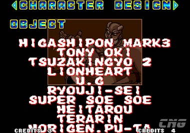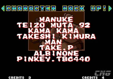 | Terry BogardAndy Bogard | Joe Higashi | Mai Shiranui | Kim Kaphwan | Jubei Yamada | Cheng Sinzan | - Big Bear - |