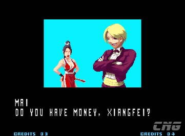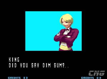 | Hero Team: K', Maxima, Whip, Lin | Japan Team: Kyo, Benimaru, Daimon, Shingo | Fatal Fury Team: Terry, Andy, Joe, Mary |