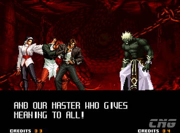 | Hero Team: Ash, Duo Lon, Shen | Outlaw Team: Gato, Billy, Yamazaki | Korea Team: Kim, Chang, Jhun | Ikari Team: Leona, Ralf, Clark |