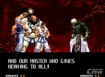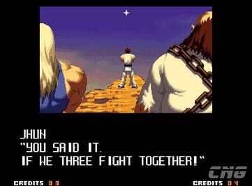 | Art of Fighting Team: Ryo, Robert, Yuri | Benimaru Team: Benimaru, Shingo, Daimon | 3 Tesoros Sagrados: Kyo, Iori, Chizuru |
