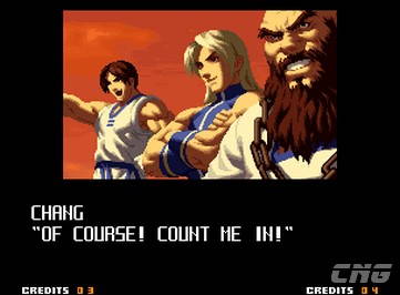 | Hero Team: Ash, Duo Lon, Shen | Outlaw Team: Gato, Billy, Yamazaki | - Korea Team: Kim, Chang, Jhun - | Ikari Team: Leona, Ralf, Clark |