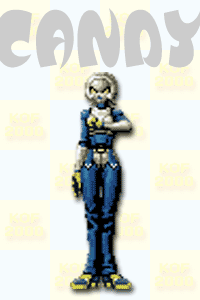 Candy usa el ataque de Kula, Ray Spin, como movimiento striker. Sin embargo, también muestra armas ocultas, incluyendo armas de fuego y lo que parece ser una pistola de rayos durante sus apariciones en el final de la congelación de Kula y "Los ataques de burla". Su estilo de lucha está basado en la habilidad de batalla de Kula, ya que también tiene habilidad para patinar y disparar armas a su oponente