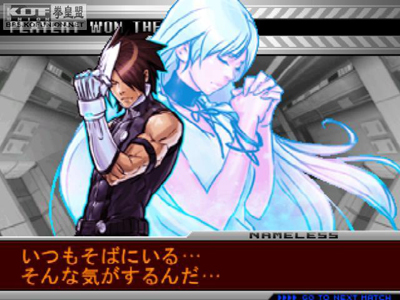 Desde que tiene memoria, Nameless sólo conoció el dolor y el sufrimiento a causa de los experimentos en su cuerpo y en su mente. Él y sus "hermanos" (otros humanos condenados a ser clones de K'), fueron puestos a prueba para ver si un humano común podría soportar el ADN de los Kusanagui. Casi todos sus hermanos sufrieron quemaduras graves e incluso la muerte tras los experimentos de mutación genética. De hecho, estuvo casi a punto de morir muchas veces. Con el tiempo, los científicos descubrieron que se requería de una gran fuerza de voluntad para mantener la llama bajo control, así que se centraron en las pruebas de resistencia al dolor. Nameless vivió una existencia miserable hasta que conoció a una hermosa pero triste niña llamada Isolda. Cada vez que estaba gravemente herido, la veía cerca de la enfermería. A pesar de que por lo general estaba demasiado herido y débil para hablar con ella, se enamoró. La idea de que algún día pudiera estar con ella, lo mantuvo vivo a través de las pruebas y experimentos despiadados. Una vez que los miembros del laboratorio confirmaron que Nameless tenía la suficiente fuerza como para poder controlar las llamas Kusanagi, se le injertó su famoso guante en el brazo derecho. El guante serviría para aumentar su fuerza de voluntad, lo que teóricamente lo haría más fuerte que Kyo. Se planeó un diseño del guante similar pero para K', pero finalmente se lo dieron a él.