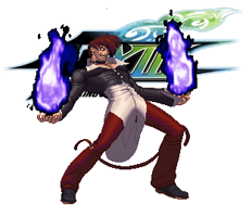 En The King of Fighters '97 es seleccionable mediante trucos, y es cuando demuestra al jugador lo difícil de controlar que es realmente. Las magias, los movimientos etc, todo se vuelve acelerado, signo evidente de ese Disturbio de la Sangre. |