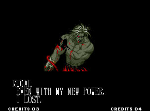 El equipo de Japón formado por Kyo Kusanagi, Benimaru Nikaido y Goro Daimon, gana el torneo, y sus integrantes son llevados por Mature a la nave de Rugal. En ese mismo instante, Saisyu Kusanagi, el padre de Kyo, entra en el buque, intentando derrotar a Rugal. Sin embargo sus esfuerzos son en vano, y tras una dura batalla queda moribundo. En ese momento llegan los campeones del torneo y Rugal se presenta, y les dice claramente que tiene la intención de derrotarlos, disecarlos y agregarlos a su colección de "trofeos". Sin embargo, para su sorpresa es derrotado por Kyo. Al verse incapaz de ganarle, decide aniquilarlos a todos, apretando el botón de autodestrucción del buque. Kyo y sus amigos pueden escapar en helicóptero, pero sin tiempo de poder salvar a Saisyu.