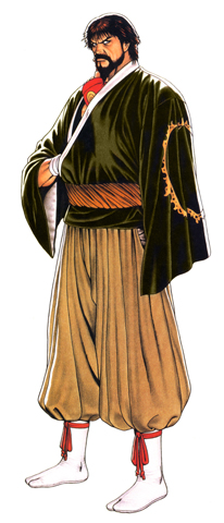 A diferencia de su hijo, el viste a la usanza antigua del clan Kusanagi, y utiliza más las técnicas básicas de su estilo tradicional.