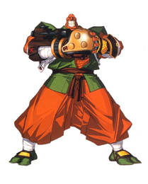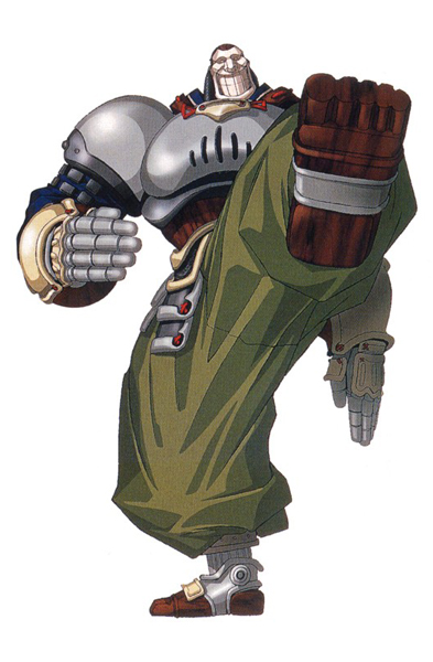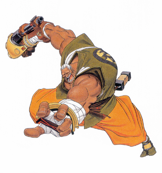 Confía en su cañón del brazo, un arma de largo alcance. En los encuentros cercanos, su forma de Shura / Slash se basa en varios golpes sin demasiado estilo, y su forma Rasetsu / Bust (presente sólo en Samurai Shodown 64) se basa en técnicas de boxeo más técnico. Varias de sus técnicas como sus ataques aéreos o el cañón del brazo antes mencionado, se asemejan a las de Sieger. Incluso menciona su interés por el Zwarigani (arma de Sieger), y trata de recrearlo con su propio cañón de brazo, el Boulder Slicer.