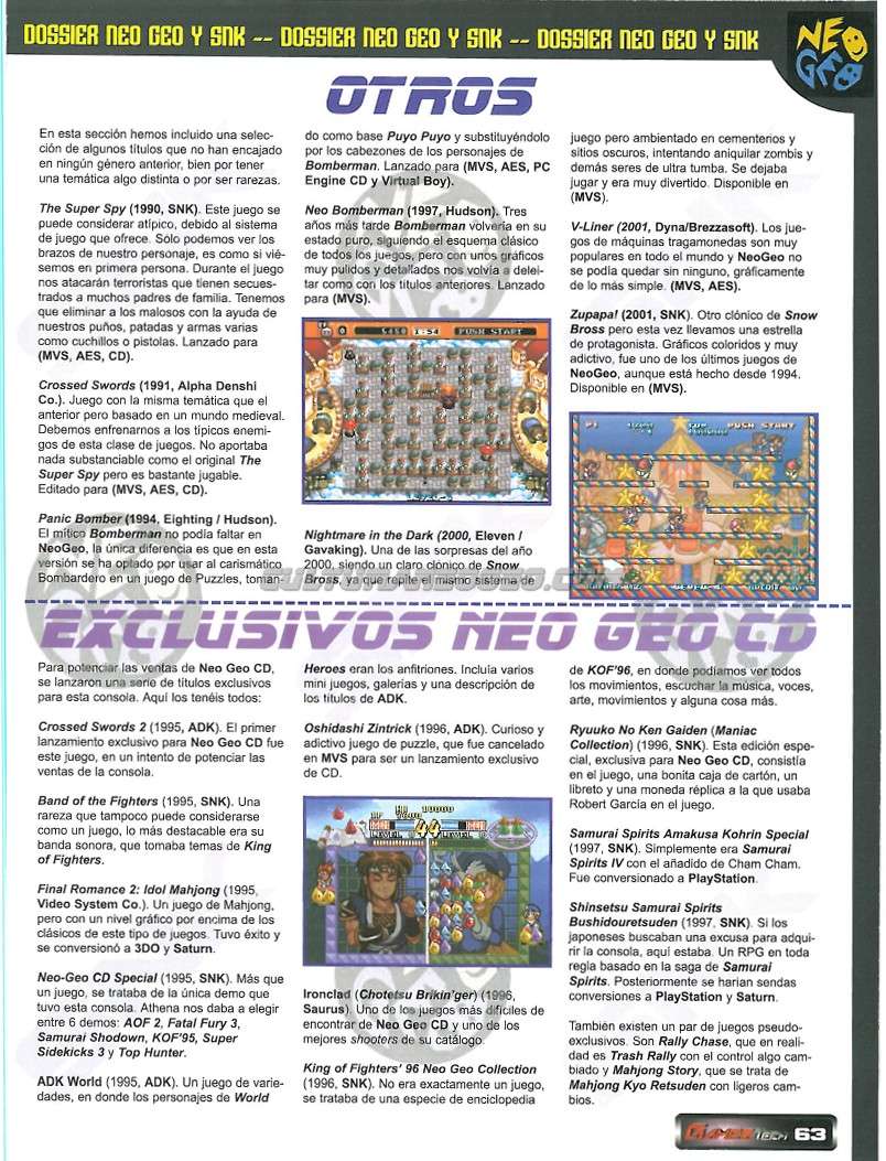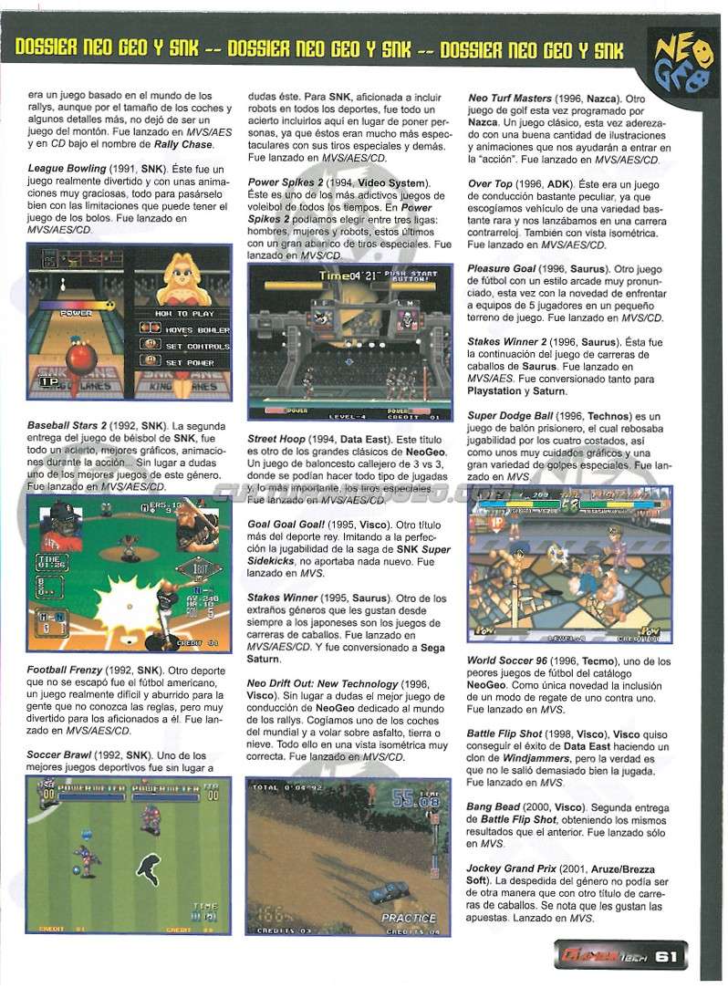 relacionada con el sistema de SNK, así como un foro donde podréis encontrar gente aficionada a Neo Geo con la que podréis compartir vuestras experiencias.
