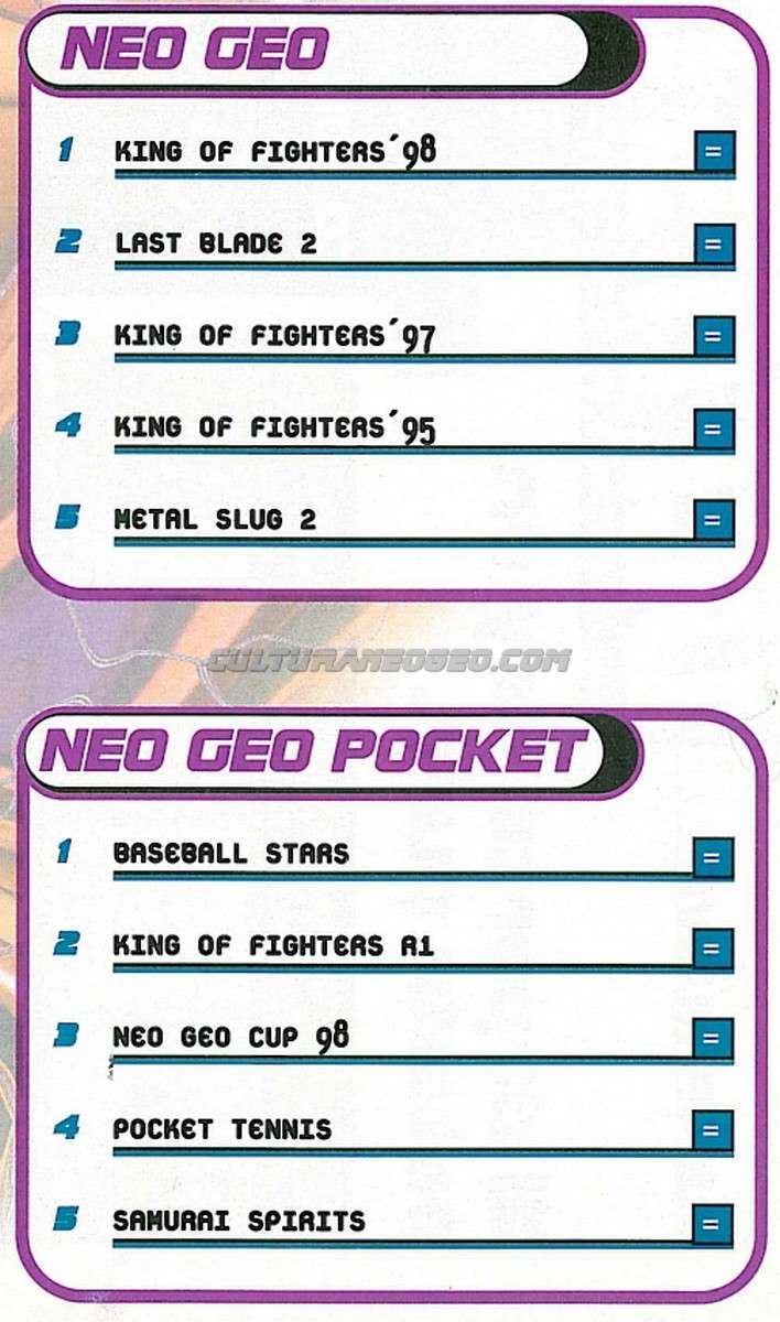 Bienvenidos a Culturaneogeo, una página de habla hispana dedicada exclusivamente al sistema Neo Geo. En ella encontraréis información de todo tipo